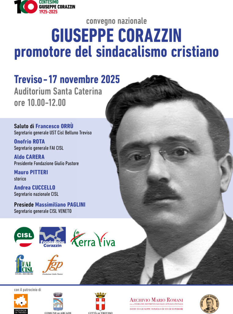 Promossa da Cisl nazionale, Fondazione Fai Cisl Studi e Ricerche, Fondazione Giulio Pastore e Fondazione Giuseppe Corazzin, con il patrocinio dell’Archivio per la storia del movimento sociale cattolico in Italia “Mario Romani”, la Provincia di Treviso, la Città di Treviso, il Comune di Arcade e il Circolo Corazzin di Arcade, l’iniziativa intende ricordare un protagonista della prima stagione del movimento sindacale cattolico, che ispirandosi all’enciclica “Rerum Novarum” di papa Leone XIII trasformò quel movimento in un’organizzazione sindacale nazionale, la Confederazione Italiana Lavoratori (CIL). Sarà anche l’occasione per riflettere sull’attualità del sindacalismo riformista di ispirazione cattolica e sul suo ruolo ancor più in questa delicata fase storica in cui resta fondamentale rimanere impegnati per la difesa dei diritti dei lavoratori e per la promozione del dialogo sociale.