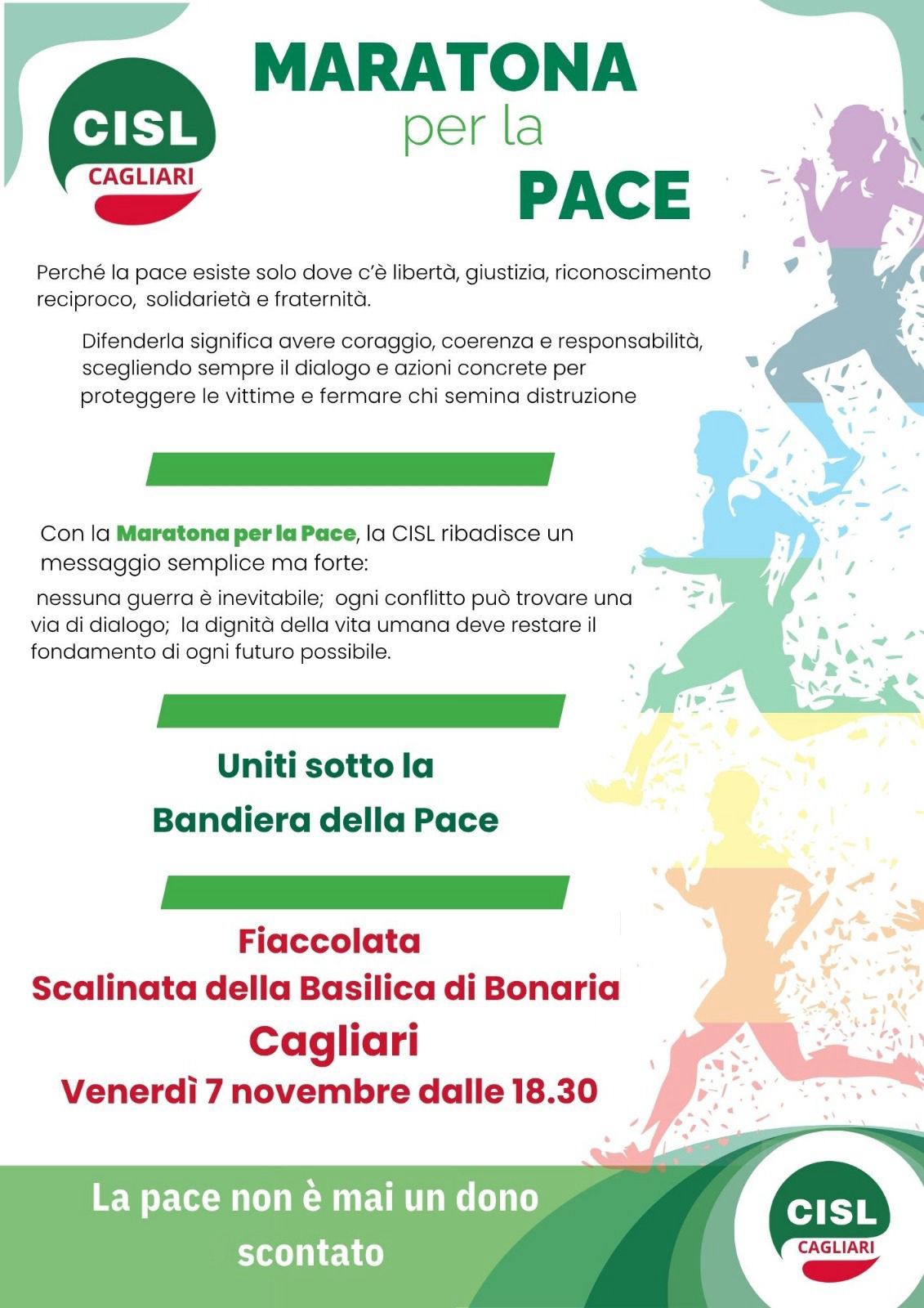 Scalinata della Basilica di Bonaria, Cagliari ore 18.30 Fiaccolata “Uniti sotto la Bandiera della Pace” Un momento di testimonianza collettiva, aperto alla cittadinanza, per ribadire il valore della pace attraverso la partecipazione attiva, la solidarietà e la condivisione. L’iniziativa ‘ntende promuovere azioni concrete e il rifiuto della violenza, in linea con i valori confederali.