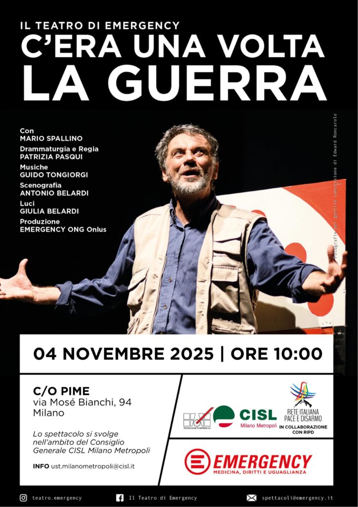 Spettacolo teatrale “C’era una volta la guerra” il Teatro di Emergency, a seguire intervista Nello Scavo (Avvenire) “Gaza – Ucraina la voce di un inviato sui teatri di guerra”