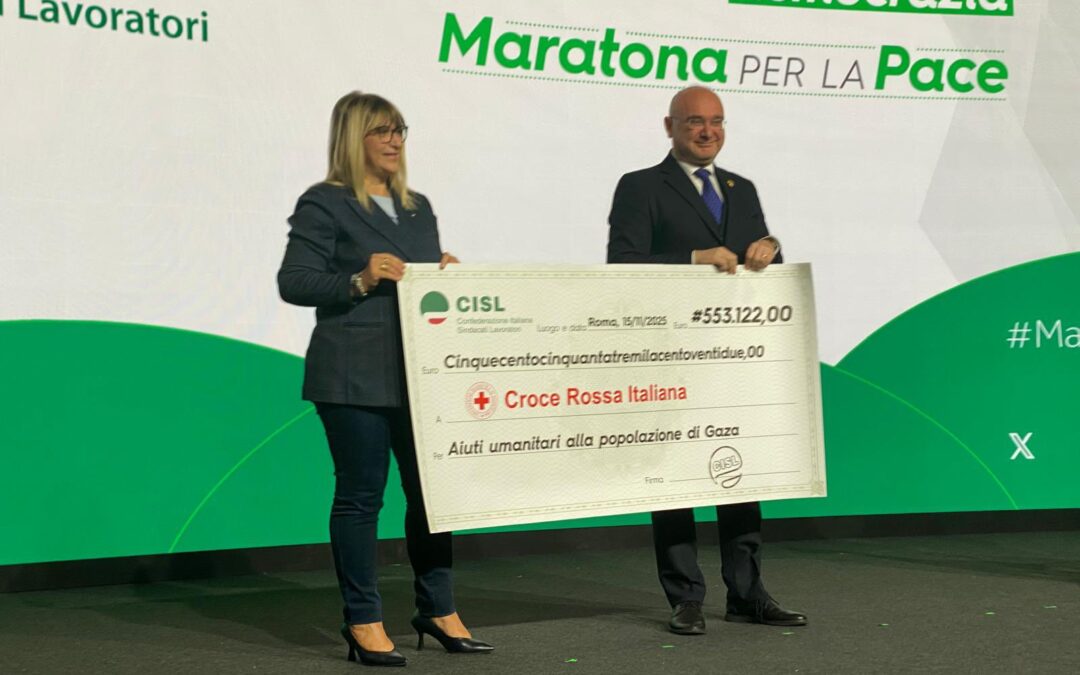 “Abbiamo deciso di conferire questa donazione alla Croce Rossa Italiana per lo straordinario impegno umanitario che svolge in tutto il mondo e che rappresenta un faro di speranza e umanità per tutti noi”. Lo dichiara la segretaria generale della Cisl Daniela Fumarola in occasione dell’assemblea nazionale della Cisl, annunciando che “la raccolta Sos Gaza ha superato i 553mila euro” e consegnando la donazione al presidente della Croce Rossa Italiana Rosario Valastro.