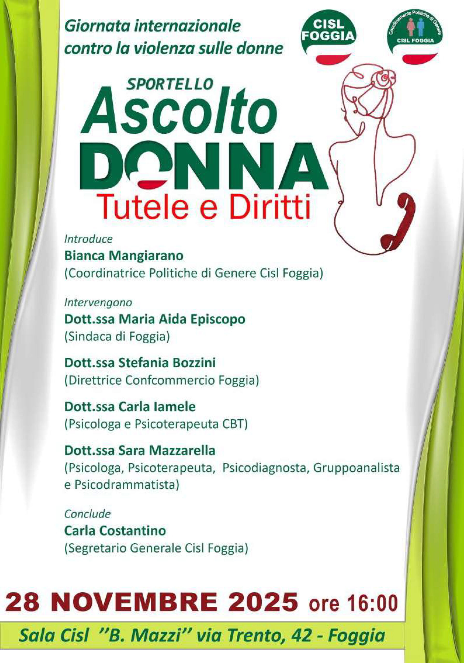 Come CISL stiamo facendo la nostra parte, con convinzione e continuità: siamo presenti ai tavoli istituzionali a partire dal nuovo Piano Strategico Nazionale sulla violenza di genere e domestica 2025-2027, portiamo dentro i luoghi di lavoro la battaglia contro ogni forma di violenza e discriminazione in piena coerenza con la Convenzione ILO 190/2019, rafforziamo la nostra rete di sportelli di ascolto e servizi perché nessuna donna si senta sola quando chiede aiuto, promuoviamo formazione per delegate, delegati, operatrici e operatori, perché sapere riconoscere i segnali della violenza è il primo passo per fermarla.