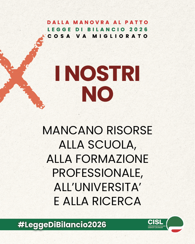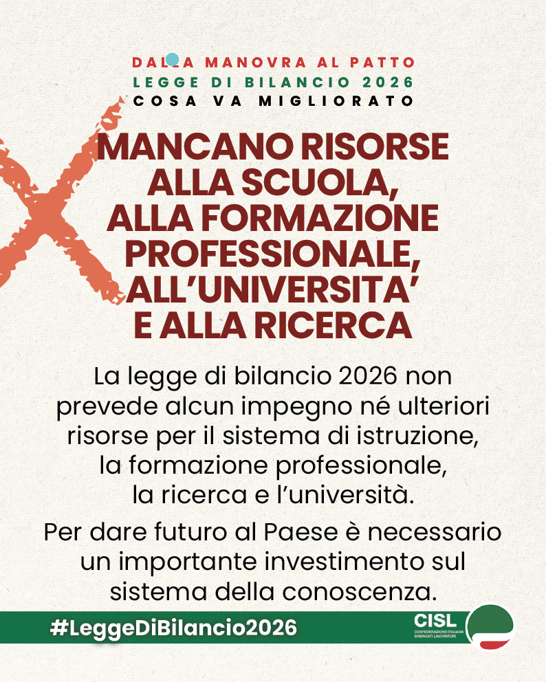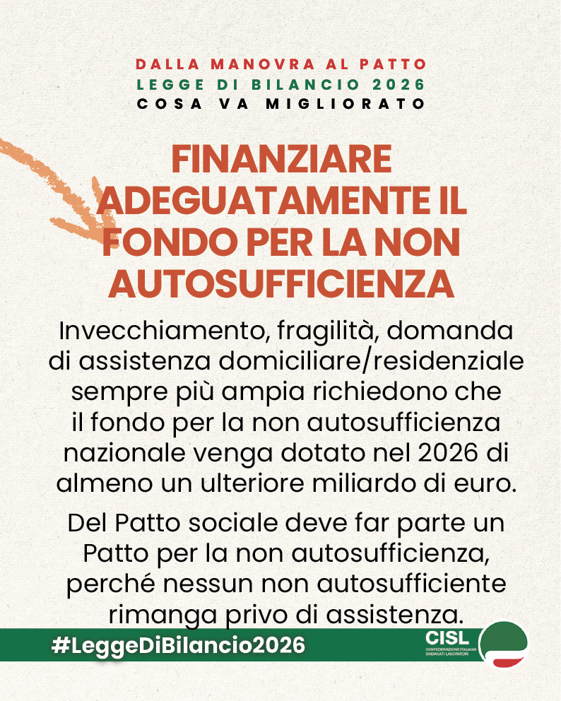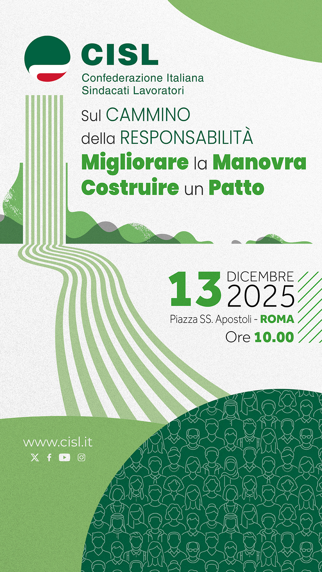 Il 13 dicembre, nella manifestazione nazionale a Roma, la Cisl chiederà dunque un progetto di sviluppo condiviso, che trovi risposte già nella Legge di Bilancio 2026 e che guardi con coraggio alle grandi trasformazioni che stanno attraversando la società, dal lavoro alle politiche industriali, fino alla sostenibilità sociale e ambientale.