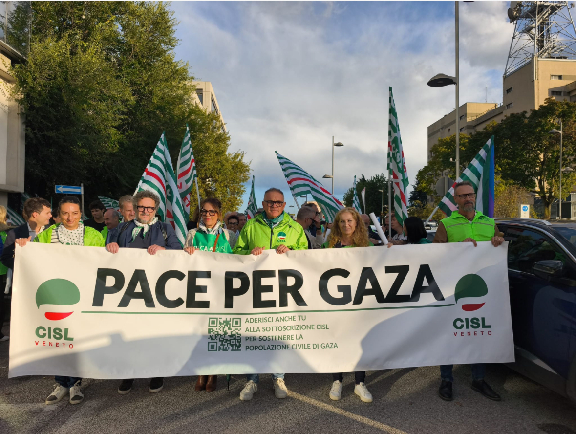 Davvero in tanti ieri sera a Mestre – lavoratrici e lavoratori, pensionati e pensionate, cittadini e cittadine –, per accendere una fiaccola di solidarietà per i bambini, le donne e gli uomini di Gaza. Partita dalla sede regionale di Cisl Veneto di via Torino, ha sfilato per la città convergendo in piazzetta Ventidue marzo con Uil Veneto per le riflessioni dei due segretari generali regionali Massimiliano Paglini e Roberto Toigo. Un gesto simbolico collettivo per chiedere che si ponga fine alla guerra e sia garantito l’arrivo degli interventi umanitari. L’azione segue di pochi giorni al lancio nella nostra regione dell’iniziativa di raccolta fondi promossa da Cisl nazionale a supporto di Croce Rossa italiana, realtà attiva in prima linea negli interventi a favore delle donne, degli uomini e dei bambini di Gaza. «Di fronte all’inaccettabile e vergognosa crisi umanitaria che così tante vittime sta facendo a Gaza, il nostro appello a lavoratori e lavoratrici è di donare il corrispettivo di un’ora del loro lavoro a sostegno degli aiuti umanitari – spiega Massimiliano Paglini, segretario generale di Cisl Veneto –. Un gesto concreto per dare forza agli interventi messi in campo dalle organizzazioni impegnate a fianco della popolazione martoriata e garantire la maggiore e più certa continuità agli aiuti».«La situazione nella striscia di Gaza rappresenta una ferita dell’umanità, non di un solo popolo. Un crimine che è uno sfregio al diritto internazionale e interpella la coscienza di tutti – continua Paglini –. La pace è e deve essere un percorso che si costruisce attraverso atti efficaci e gesti concreti». L’invito ai lavoratori, ma anche alle pensionate e ai pensionati, è di donare il controvalore di un’ora di lavoro, o cifra equivalente, per contribuire alla raccolta fondi, che sarà ampiamente promossa da Cisl Veneto pure in tutti i luoghi di lavoro. L’intero ricavato dell’iniziativa sarà devoluto alla Croce Rossa e servirà a finanziare la ricostruzione di ospedali e scuole bombardate, dei quartieri distrutti e a fornire aiuto concreto alle migliaia di vittime innocenti, tra cui numerosissimi bambini. Il contributo può essere versato utilizzando le seguenti coordinate bancarie: IBAN IT73I0103003201000002918273, conto intestato a CISL – Donazione a sostegno aiuti umanitari popolazione civile di Gaza; causale: “Donazione a sostegno aiuti umanitari popolazione civile di Gaza”. Cisl Veneto si unisce a Cisl nazionale chiedendo l’apertura immediata di corridoi umanitari sicuri per garantire l’arrivo di aiuti senza ostacoli, il cessate il fuoco immediato come unica condizione per aprire uno spiraglio di dialogo, la liberazione immediata degli ostaggi e il disarmo dei terroristi di Hamas. Nel condannare fermamente ogni ipotesi di annessione territoriale da parte di Israele, Cisl Veneto sostiene il rilancio del confronto con l’Autorità nazionale palestinese, unica interlocutrice legittima per ridare prospettiva al progetto di due popoli e due Stati che convivano in sicurezza. Allegata foto iniziativa |