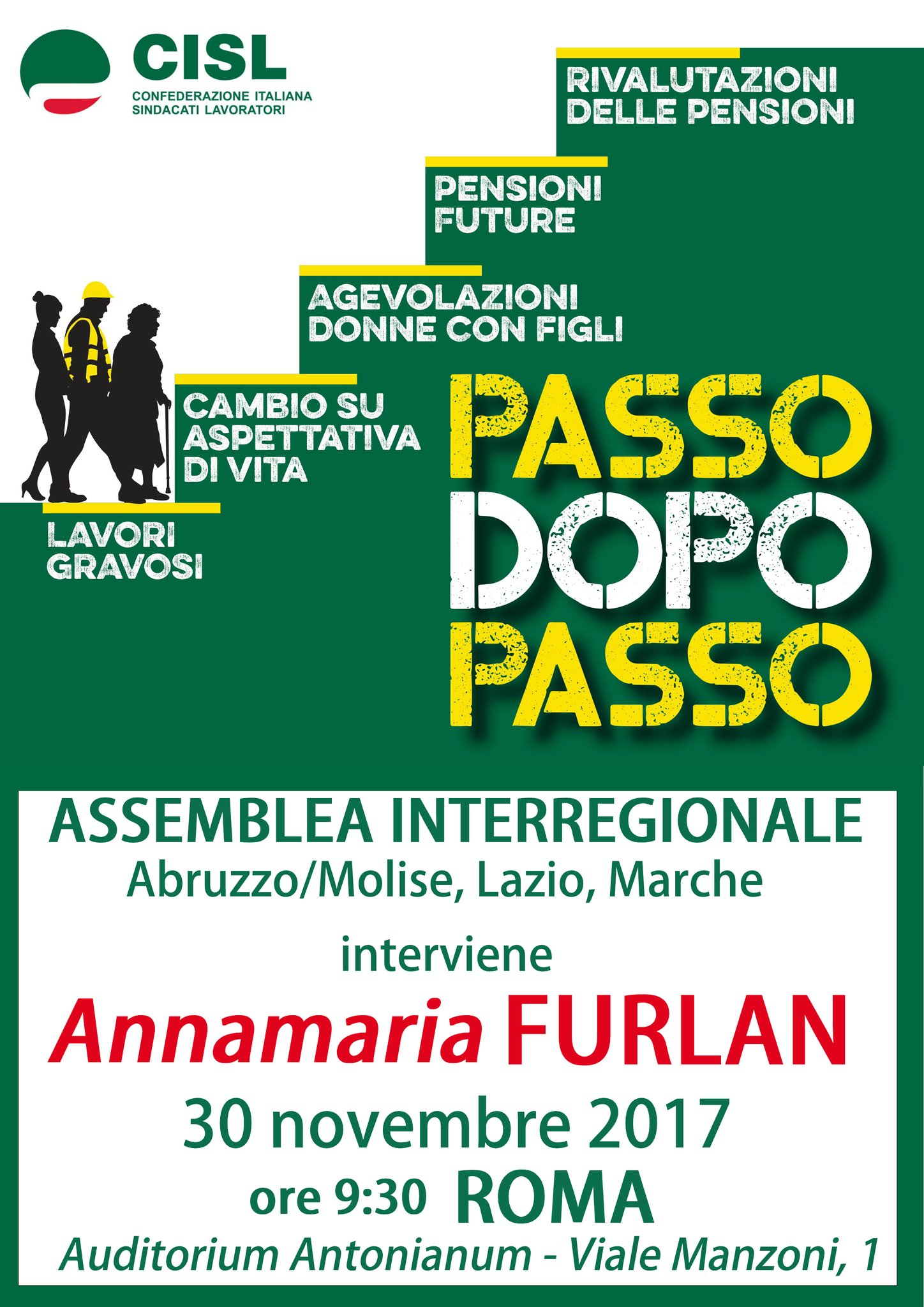 Roma, 29 novembre 2017. Pensioni, aspettativa di vita, lavori gravosi. ape social. donne e giovani saranno i temi che verranno affrontati domani, 30 novembre ’17, in occasione dell’Assemblea interregionale della Cisl del Lazio, Marche, Abruzzo e Molise, organizzata a Roma dalla Cisl del Lazio presso l’Auditorium Antonianum, viale Manzoni 1, alla quale parteciperanno 600 tra delegati, Rsu, lavoratori, pensionati, iscritti e simpatizzanti della Cisl. Scopo dell’iniziativa è sostenere l’importanza delle nuove misure e dei risultati ottenuti dal confronto con il Governo relativi al tema delle Pensioni e delle Politiche del lavoro, e contenuti nella prossima Legge di Stabilità 2018. Argomenti che, per la rilevanza sociale dei temi, saranno materia di approfondimento e dibattito per avviare una forte campagna di informazione rivolta ai lavoratori, ai pensionati e a tutta la cittadinanza. Dopo un anno dall’intesa sulla Previdenza sono molti i punti messi a segno dalla Cisl in una partita, come quella delle pensioni, che oltre ad essere delicatissima perché entra nella vita di ognuno, coinvolge migliaia di lavoratori e lavoratrici. Oggi il tema delle pensioni rimane un cantiere aperto, con una consapevolezza che prima non c’era: superare le rigidità imposte dalla Legge Fornero non è più un tabù ma una realtà. Ai lavori dell’Assemblea interverrà Annamaria Furlan, segretaria generale della Cisl.