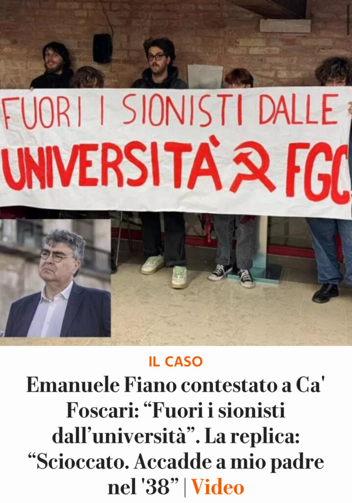 all’Università Ca’ Foscari di Venezia. Riteniamo grave e inaccettabile qualsiasi tentativo di ostacolare il libero confronto di idee, soprattutto quando proviene da chi si dichiara a favore della pace e del dialogo. La democrazia si fonda sulla libertà di espressione, sul rispetto reciproco e sulla possibilità di ascoltare anche posizioni diverse dalle proprie”. Lo scrive sui social la leader della Cisl Daniela Fumarola.’