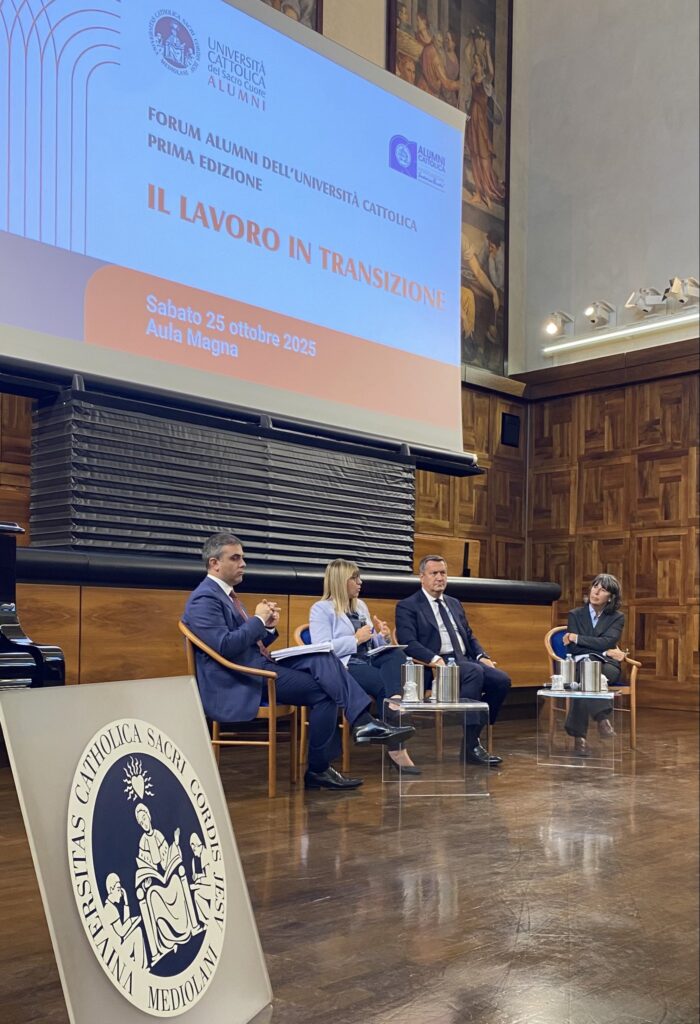 “Viviamo in un tempo in cui il cambiamento non è più un’eccezione, ma la regola. Il lavoro in transizione è un tema cruciale, che tocca la vita di ciascuno di noi. Parliamo di trasformazioni profonde che attraversano l’economia, la società e la vita quotidiana delle persone”. Così la Segretaria Generale della Cisl Daniela Fumarola oggi a Milano intervenuta al “Forum Alumni” dell’Università Cattolica del Sacro Cuore dedicato al tema : ‘Il lavoro in transizione‘, una giornata di dialogo multidisciplinare per condividere visioni, esperienze e best practices, anche in chiave intergenerazionale.