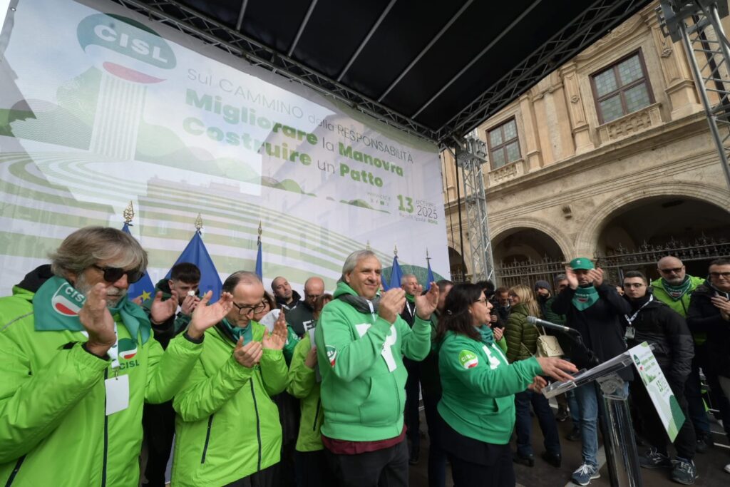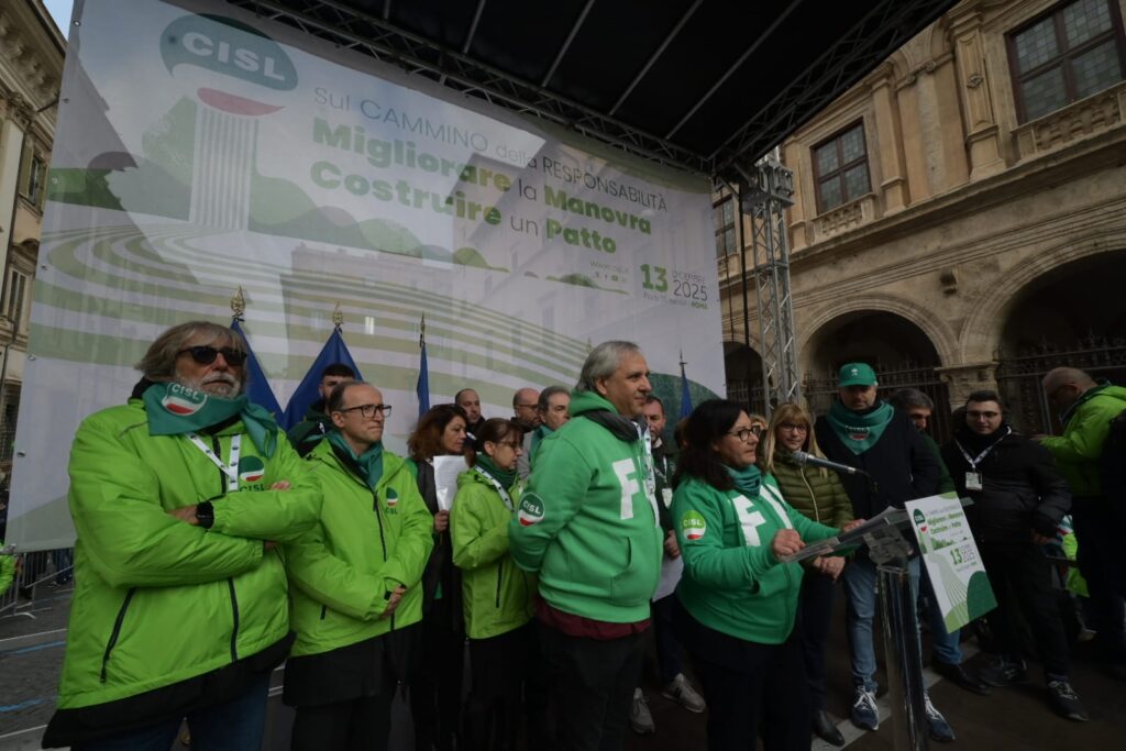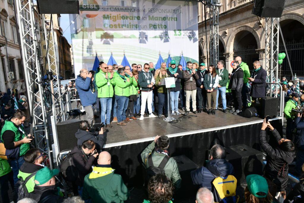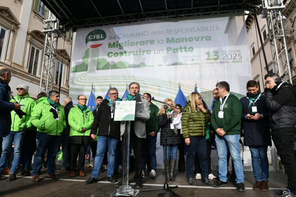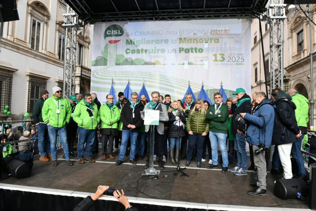 “In queste settimane abbiamo fatto un percorso: lo abbiamo chiamato “Cammino della Responsabilità”. Non è stata una formula, un titolo ben riuscito. Sono stati incontri nei luoghi di lavoro, assemblee, confronti nei territori, con migliaia di delegate e delegati, pensionati e pensionate, che hanno dato prova della nostra volontà, della nostra energia collettiva. E oggi questo cammino arriva qui, in questa piazza. Per dire alcune cose molto chiare. La Cisl fa sul serio da sempre: innovando, contrattando, dialogando con tutti, firmando accordi, prendendosi responsabilità. Con questo spirito abbiamo considerato la Legge di Bilancio come un primo banco di prova del “Cammino della Responsabilità” da fare insieme. E portato al tavolo di tutti i gruppi parlamentari le nostre proposte di miglioramento”.
