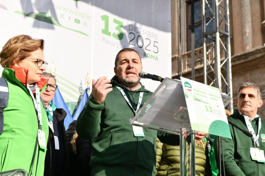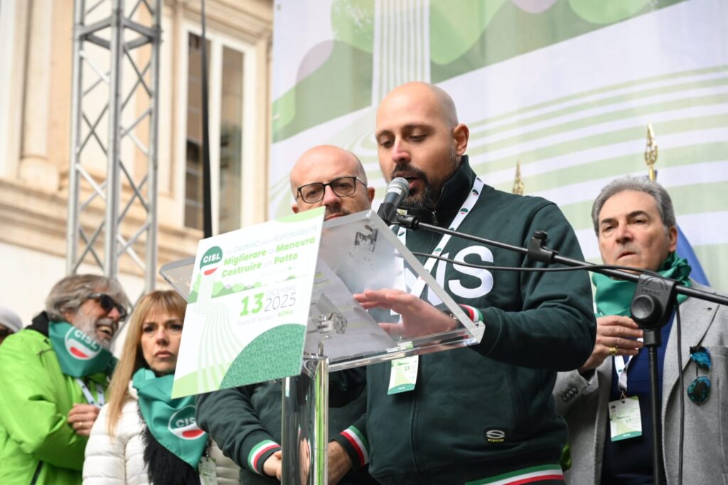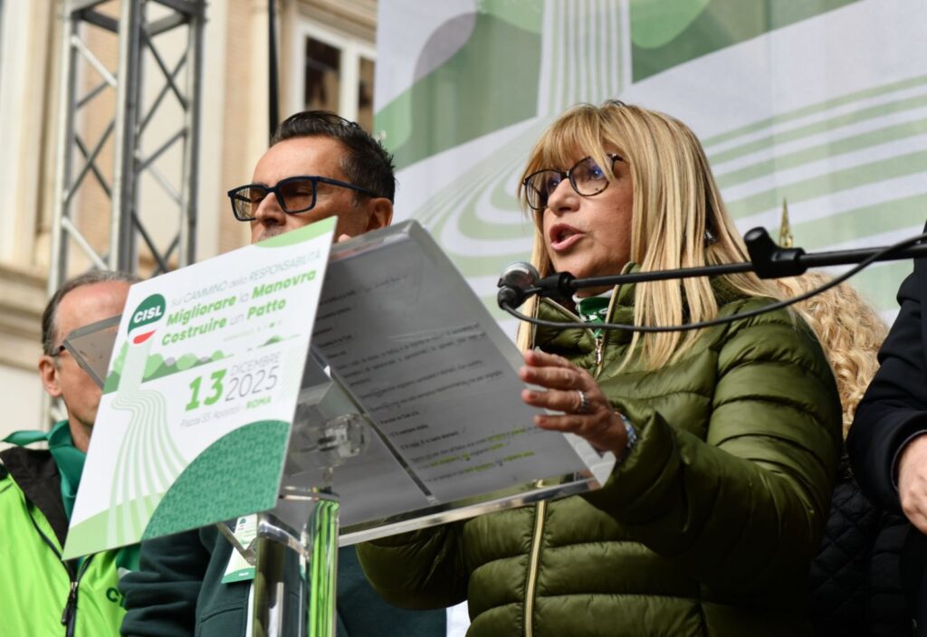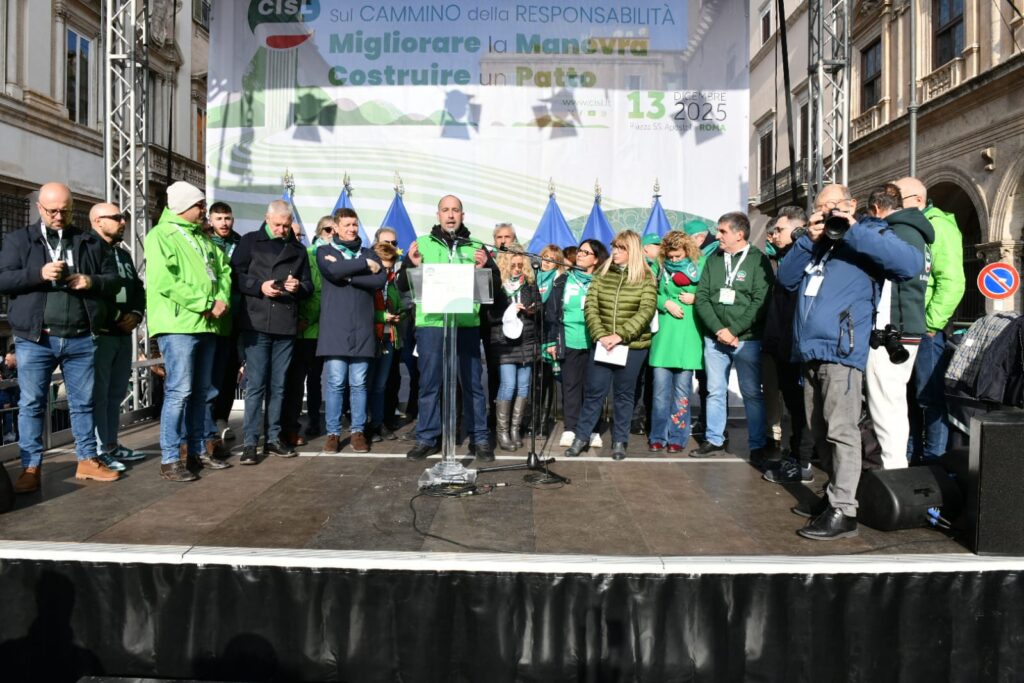 “In queste settimane abbiamo fatto un percorso: lo abbiamo chiamato “Cammino della Responsabilità”. Non è stata una formula, un titolo ben riuscito. Sono stati incontri nei luoghi di lavoro, assemblee, confronti nei territori, con migliaia di delegate e delegati, pensionati e pensionate, che hanno dato prova della nostra volontà, della nostra energia collettiva. E oggi questo cammino arriva qui, in questa piazza. Per dire alcune cose molto chiare. La Cisl fa sul serio da sempre: innovando, contrattando, dialogando con tutti, firmando accordi, prendendosi responsabilità. Con questo spirito abbiamo considerato la Legge di Bilancio come un primo banco di prova del “Cammino della Responsabilità” da fare insieme. E portato al tavolo di tutti i gruppi parlamentari le nostre proposte di miglioramento”.