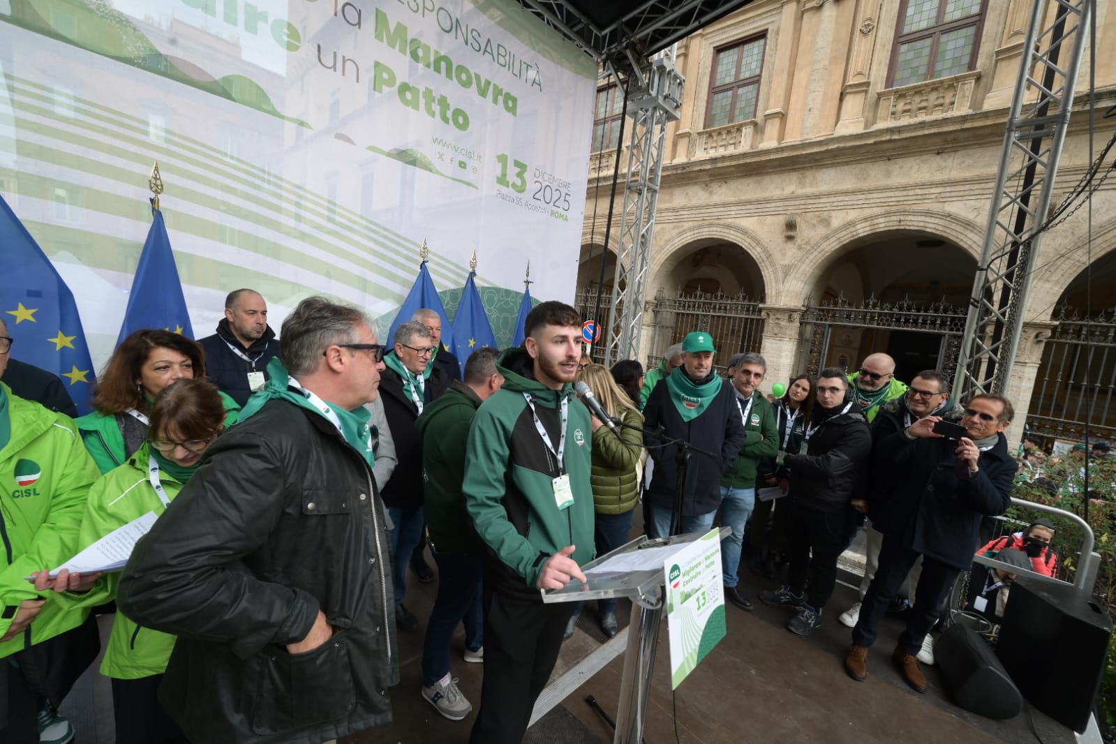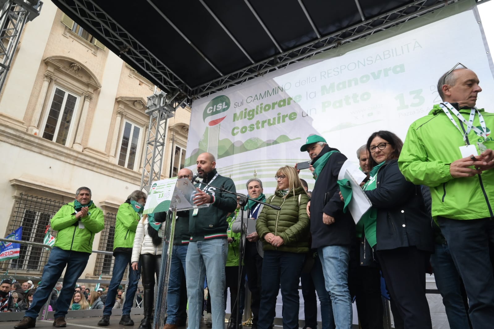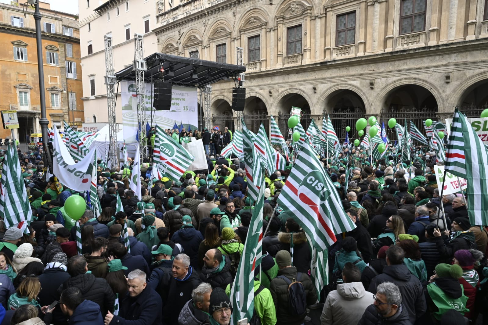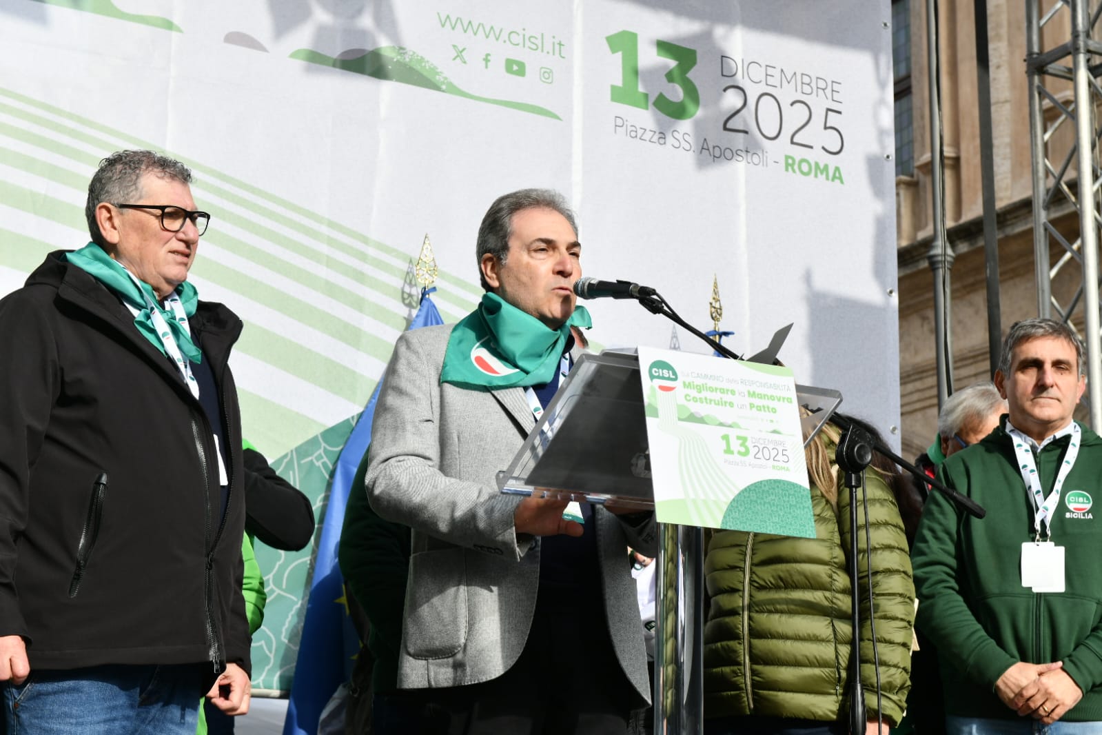 “Guardate questa piazza, guardatela davvero, guardate! Questa è la CISL. Siete voi. Sono le vostre storie, la fatica e la dignità di milioni di lavoratrici e lavoratori, di pensionati e pensionate, di giovani che non si arrendono. Siamo qui perché vogliamo cambiare il domani, non subirlo. Siamo qui non per una semplice testimonianza, ma per orgoglio. Perché la CISL c’è, perché c’è sempre stata, c’è oggi e ci sarà domani”. Con queste parole Daniela Fumarola, dopo gli interventi delle delegte e dei delegati delle federazioni e dei territori della Cisl, ha concluso la Manifestazione nazionale Migliorare la manovra, costruire un Patto che ha avuto luogo oggi, sabato 13 dicembre a Roma, in Piazza Santi Apostoli. Manifestazione che si pone all’interno del “Cammino della Responsabilità“, la campagna di mobilitazione con cui la Confederazione di via Po ha attraversato in queste settimane tutto il Paese per sostenere le richieste di modifica alla legge di bilancio e rilanciare il “patto sociale” su lavoro, crescita, coesione.