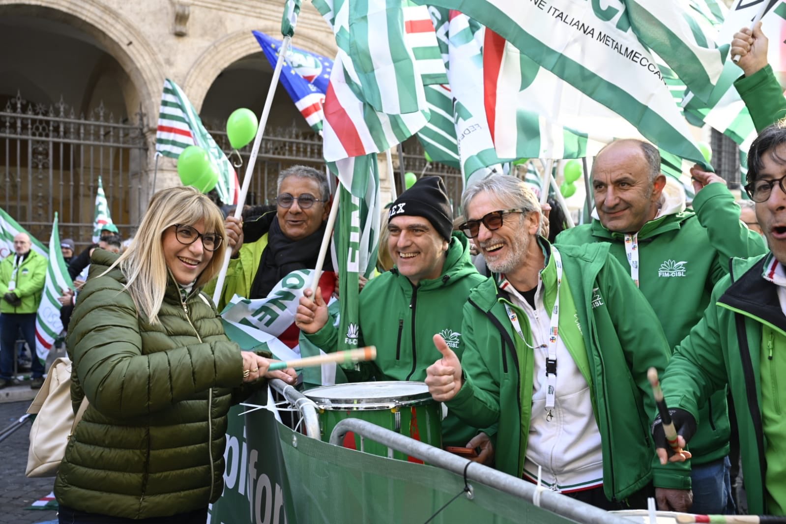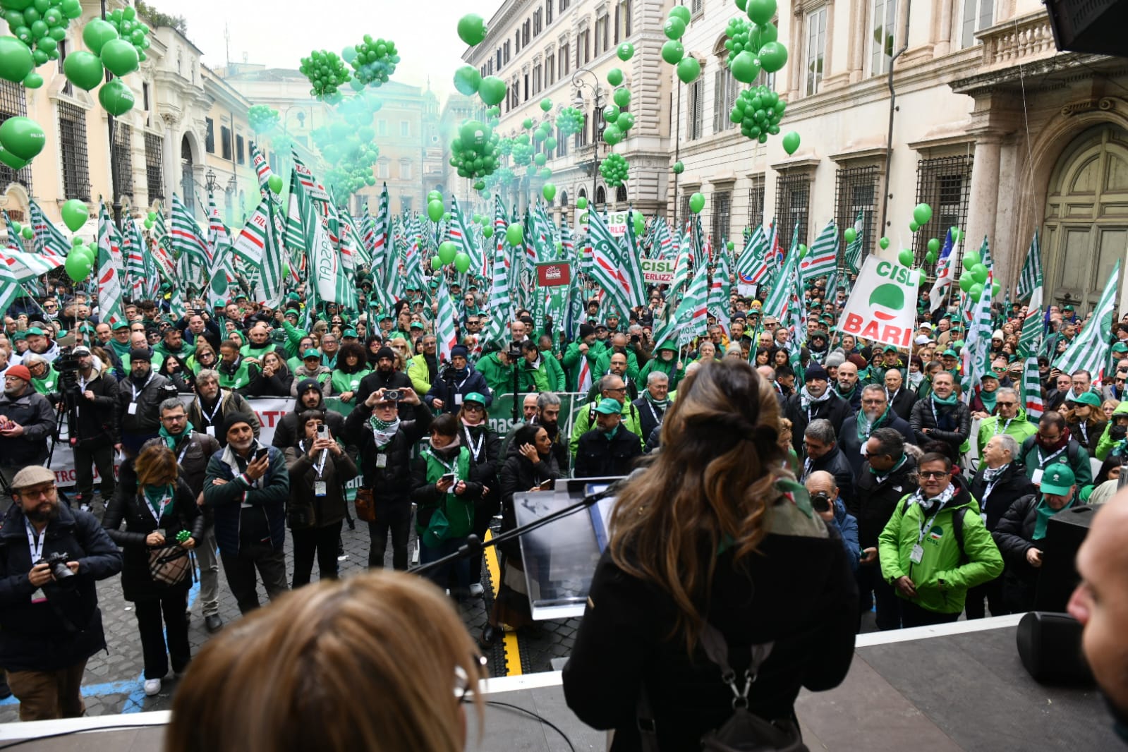 L’arrivo a Piazza Santi Apostoli della Segretaria Generale della Cisl