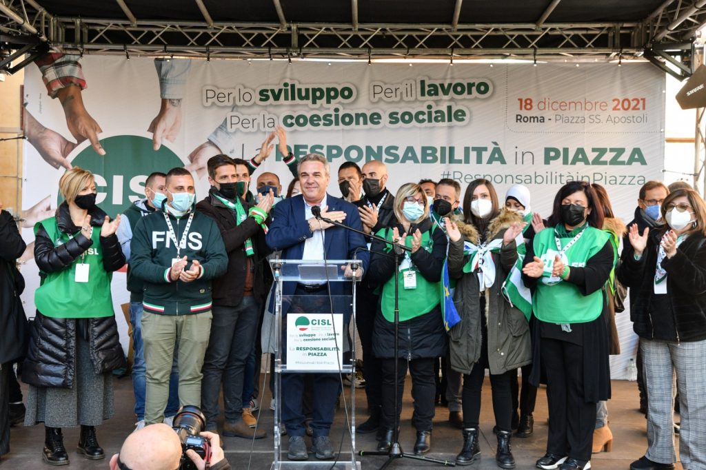 “La marcia verso il nuovo va orientata con la bussola della concordia e della corresponsabilità. Noi oggi vogliamo lanciare questa sfida. E diciamo al Governo, alle controparti pubbliche e private e anche a Cgil e Uil che questo è il tempo di esserci per cambiare. Di negoziare crescita, lavoro, contrasto alle disuguaglianze, lotta alla povertà”. Lo ha detto oggi il Segretario Generale della Cisl Luigi Sbarra a Roma concludendo a Piazza Santi Apostoli la manifestazione nazionale della Cisl. “Ecco perché oggi siamo qui. Per promuovere un metodo e un percorso che ha un traguardo strategico per tutti: un nuovo e moderno Patto per il lavoro, la crescita e la coesione”.