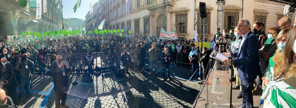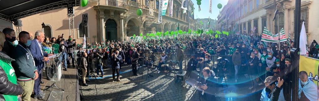 “Siamo in tanti a riempire questa bella piazza con i nostri colori, le nostre voci e le nostre ragioni. Con tutto l’orgoglio per quel che siamo e rappresentiamo. Liberi. Autonomi. Lontani da totem ideologici, da qualsiasi tipo di subalternità politica. Nell’interesse esclusivo di lavoratrici e lavoratori, pensionate e pensionati. Principi, valori, che abbiamo sempre seguito e che guidano la nostra azione anche ora, in un momento che per il Paese è complicato e decisivo.