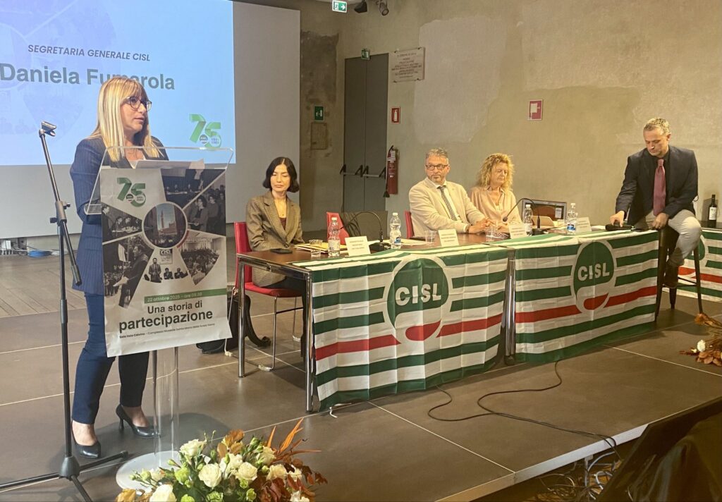 Vogliamo fare della legge sulla partecipazione il caposaldo di una nuova cultura del lavoro e delle relazioni industriali, in cui ognuno deve fare la propria parte per una prospettiva di crescita economica equa e di giustizia sociale. A partire dalla nuova Legge di Bilancio, perché diventi il primo tassello di quel Patto della Responsabilità e di un percorso condiviso che unisca produttività, salari, coesione e partecipazione. Un obiettivo che nelle prossime settimane deve vederci tutti impegnati ccn la nostra mobilitazione del Cammino della Responsabilità, guardando ad un orizzonte molto più ampio e facendo appello alle forze riformiste del nostro Paese”. Lo ha detto oggi a Siena la segretaria generale della Cisl Daniela Fumarola concludendo l’iniziativa della Unione Territoriale Cisl Siena: “Una Storia di Partecipazione”, a 75 anni dalla Fondazione della Confederazione.