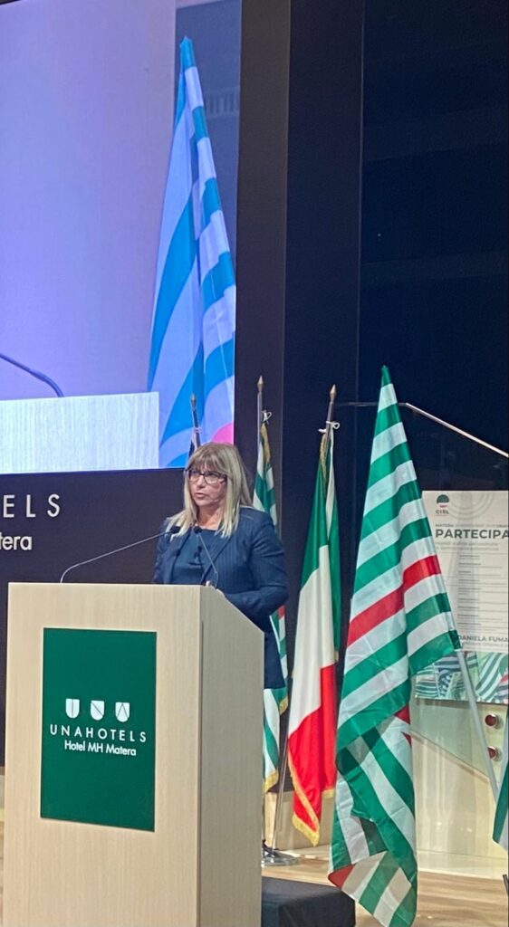 «Abbiamo spinto con determinazione per avere finalmente nel nostro ordinamento una legge che dia piena attuazione all’articolo 46 della Costituzione. Non lo abbiamo fatto per rivendicare una bandiera identitaria, ma per contribuire alla costruzione di un nuovo paradigma capace di ridefinire la qualità e i vincoli sociali dello sviluppo, ristabilendo un rapporto moderno e responsabile tra etica ed economia, tra valori ed efficienza nell’uso e nella distribuzione delle risorse». Lo ha affermato la Segretaria Generale della CISL, Daniela Fumarola, concludendo a Matera l’iniziativa promossa dalla CISL Basilicata sulla legge 76 per la partecipazione. Fumarola ha sottolineato come la Basilicata, per le sue peculiarità e le sfide che sta vivendo, «possa candidarsi a diventare un primo, straordinario laboratorio di democrazia economica al servizio dello sviluppo. Penso – ha aggiunto – alle dinamiche dello spopolamento e all’impoverimento del tessuto sociale ed economico delle aree interne. Qui sarebbe fondamentale sperimentare modelli partecipativi capaci di attrarre investimenti orientati allo sviluppo sostenibile, all’economia circolare, alla creazione di nuova occupazione per i giovani, contrastando il declino e valorizzando le eccellenze del territorio».
