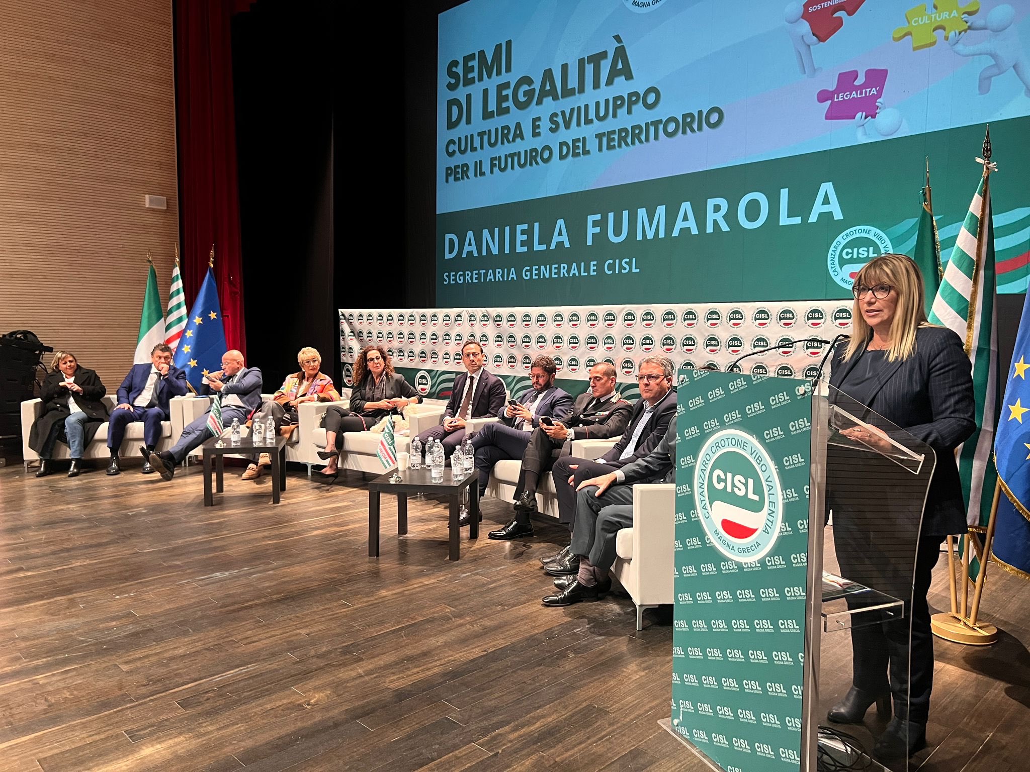 “‘Semi di Legalità’ nasce con questo spirito costruttivo qui in Calabria – ha aggiunto la leader della Cisl – perché in questa regione la domanda di futuro è più forte che altrove, perché in questa terra bellissima, ma non priva di contraddizioni, la criminalità organizzata non è soltanto un fenomeno giudiziario, ma una pressione quotidiana sulla vita economica, sociale, professionale”, ha precisato Fumarola sottolineando che: Quando un territorio è inquinato dalla criminalità paga un prezzo che tutti avvertono: servizi più deboli, infrastrutture che non si fanno, imprese scoraggiate, investitori che si allontanano, giovani costretti a partire. È come una tassa non dichiarata, che pesa sul futuro più ancora che sul presente. Al contrario, dove le regole sono chiare e rispettate, dove la trasparenza è un valore condiviso, la Pubblica Amministrazione funziona bene e non crea ostacoli inutili, le imprese crescono, il lavoro si qualifica, il territorio diventa più attrattivo” – ha concluso.